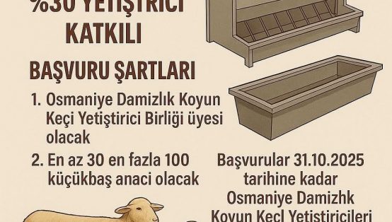 Osmaniye İlinde Uygulanan Halk Elinde Hayvan Islahı Kıl Keçisi Irkı Alt Projesi kapsamında Osmaniye Damızlık Koyun-Keçi Yetiştiricileri Birliğinde İstihdam...